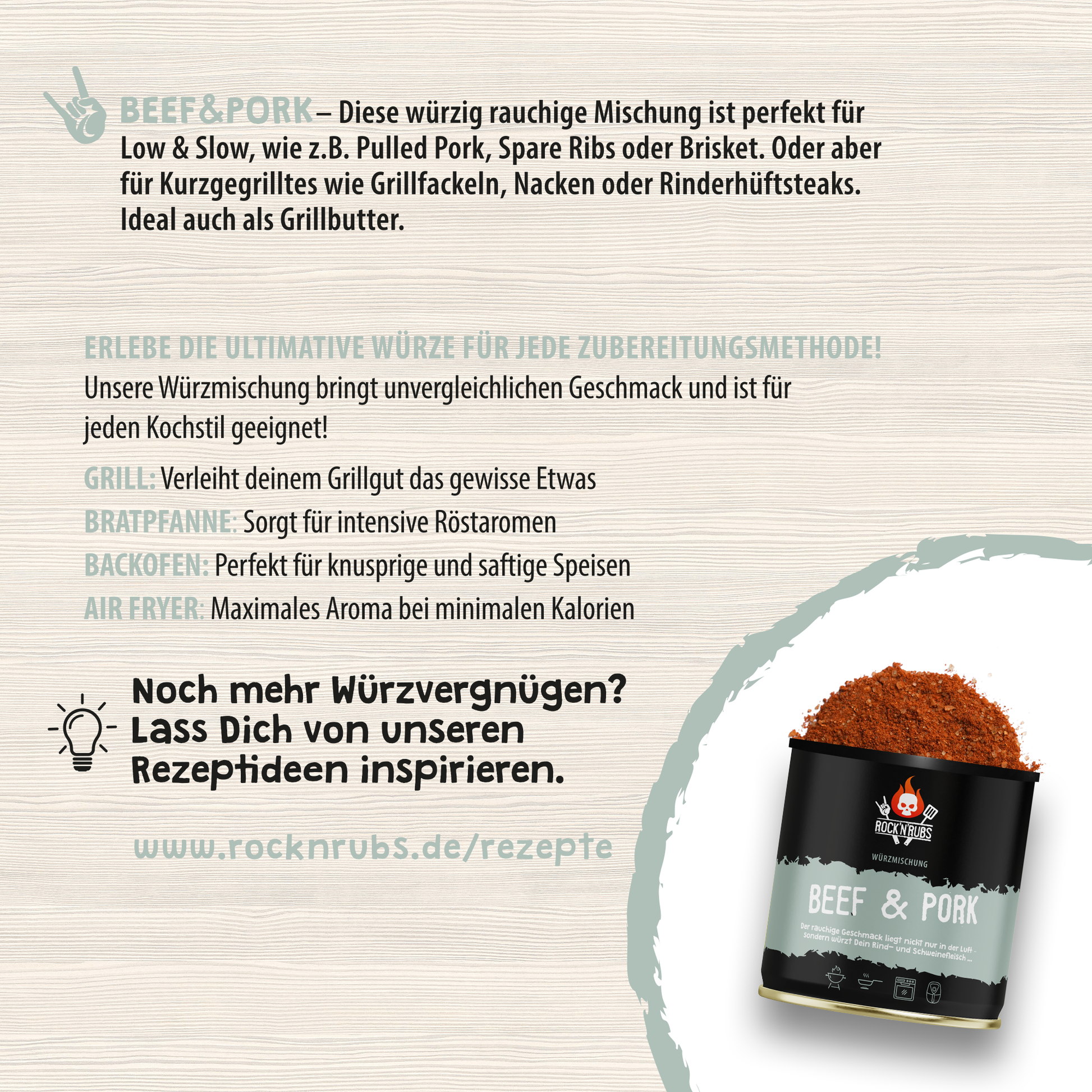 Der rauchige Geschmack liegt nicht nur in der Luft – sondern würzt euer Schweine- und Rindfleisch.