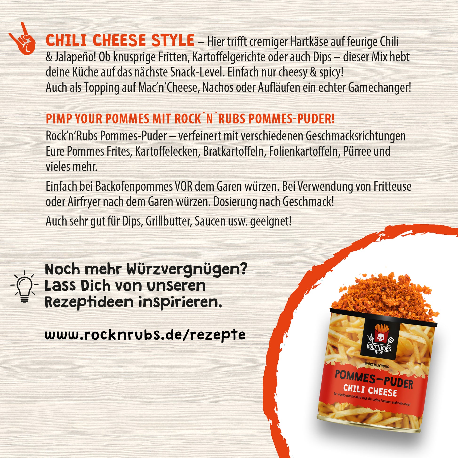Ob knusprige Fritten, Kartoffelgerichte oder auch Dips – dieser Mix hebt deine Küche auf das nächste Snack-Level. Einfach nur cheesy & spicy! Auch als Topping auf Mac’n’Cheese, Nachos oder Aufläufen ein echter Gamechanger!