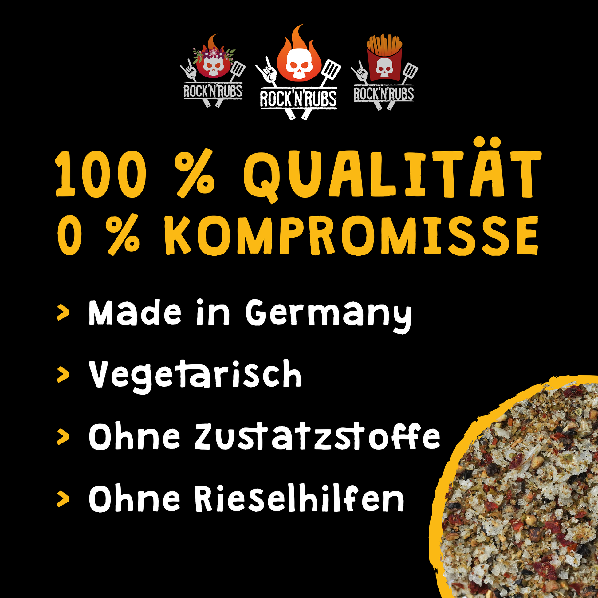 Perfekt für Pommes und Kartoffelgerichte, auch als Grillgewürz für Fleisch und Gemüse sowie für Dips und Grillbutter zu verwenden.