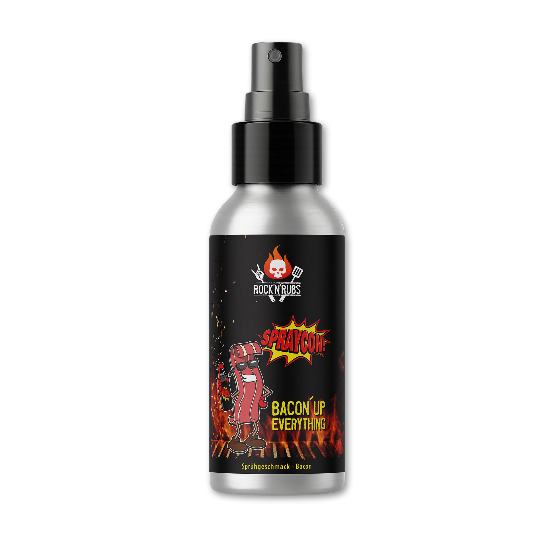 Der Hit für den Bacon-Liebhaber. Spraycon (Sprühgeschmack „Bacon“) bringt den leckeren Speck-Geschmack auf alles, was noch besser schmecken soll. Ob Burger oder Pizza, Bratwurst oder Nackensteak, Pommes, Kartoffeln, Pasta, Sandwich, Grillkäse oder Salat.